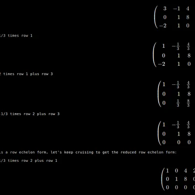 One of the problems in teaching linear algebra is coming up with a handful of examples of matrices that can 'nicely' be row-reduced. This code generates random matrices with integer entries whose reduced row echelon form will also have integer entries.